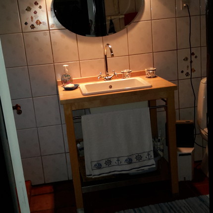 Bad og toilet Toilet og bruseniche. Varmt og koldt vand. Vaskemaskine.