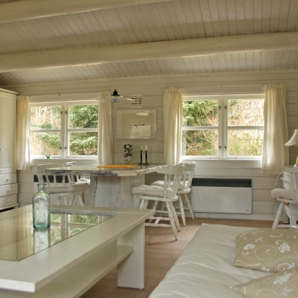 | Indretning | Ca. 24 m2 stue, køkken. 2 soverum. 2 Rum med hver 2 enkeltsenge. Sovesofa i stuen. El-varme. |